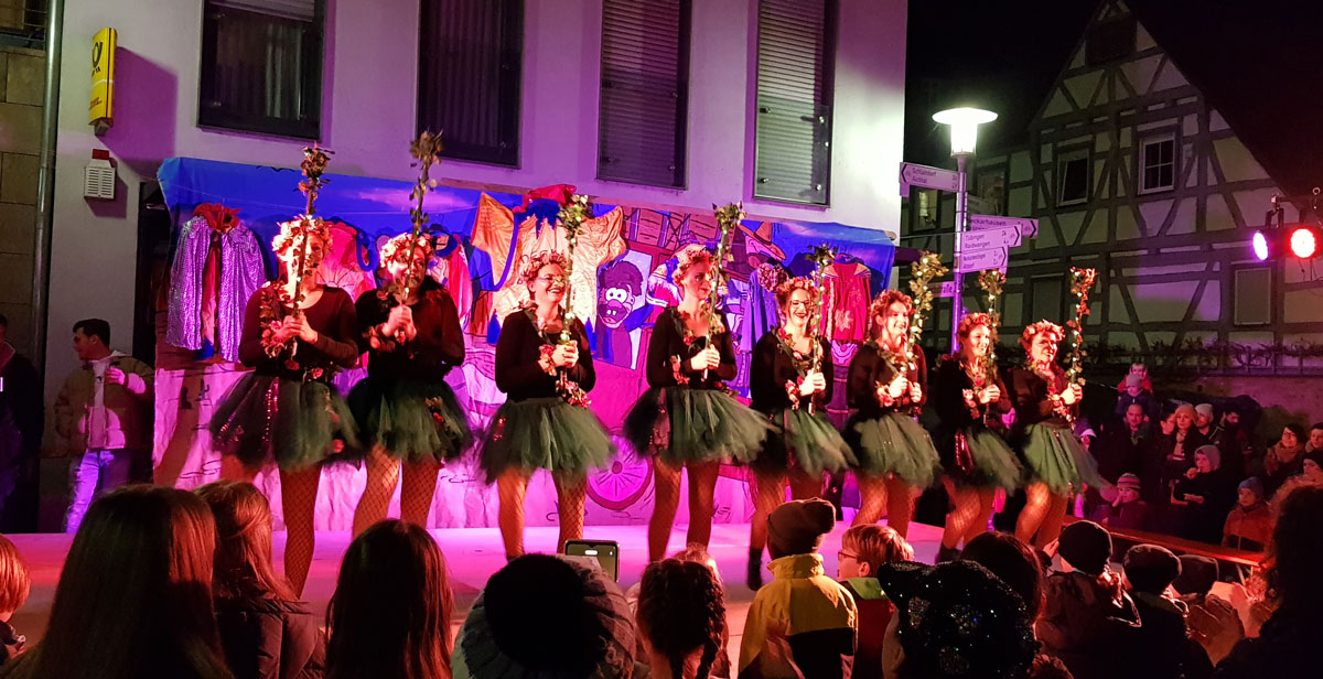 Unsere Blue Diamonds eröffneten am 05.01.23 beim Häsabstauben der Neckar-Bätscher auf dem Rathausplatz die Fasnet 2023