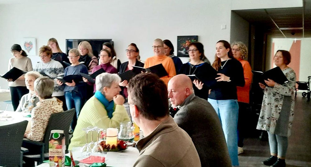 Selbstverständlich dufte das gemeinsame Singen nicht fehlen und so wurde mit allen Bewohnern, ihren Angehörigen und dem Pflegepersonal altbekannte Weihnachtslieder wie „Oh Tannenbaum“, Kling Glöckchen kling“ und „Stille Nacht“ angestimmt und gemeinsam gesungen.